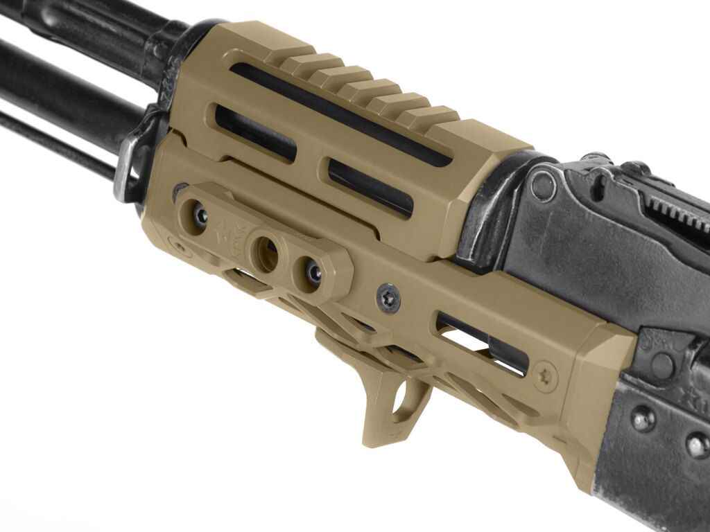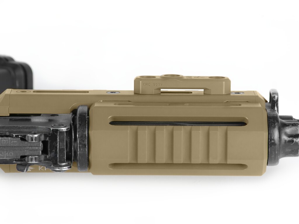 M-Lok montáž zabezpečí pevné spojenie s predpažbím, pažbou alebo lištou. Konštrukcia počíta aj s náročným zaobchádzaním – žiadne kývanie, žiadne presviedčanie skrutiek. Keď to raz pripevníte, drží to tak, ako má. Či už sa zbraň hojdá cez chrbát, alebo letí z ruky pri výmene za pištoľ.