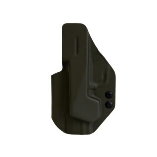 AIWB Crocy je vnútorné puzdro, ktoré umožňuje nosiť zbraň čo najbližšie pri tele. Pomáha tomu prítlačný prvok pod opaskom, ktorý tlačí rukoväť zbrane smerom dovnútra. Tým výrazne zlepšuje skrytie zbrane aj pri voľnejšom oblečení. Telo puzdra je navrhnuté tak, aby nezaberalo viac miesta, než je nutné – a pritom držalo zbraň pevne a spoľahlivo.
