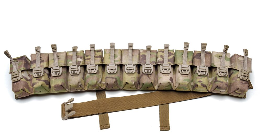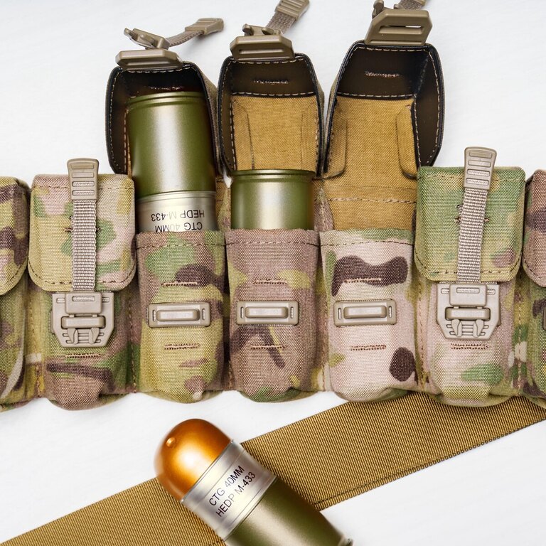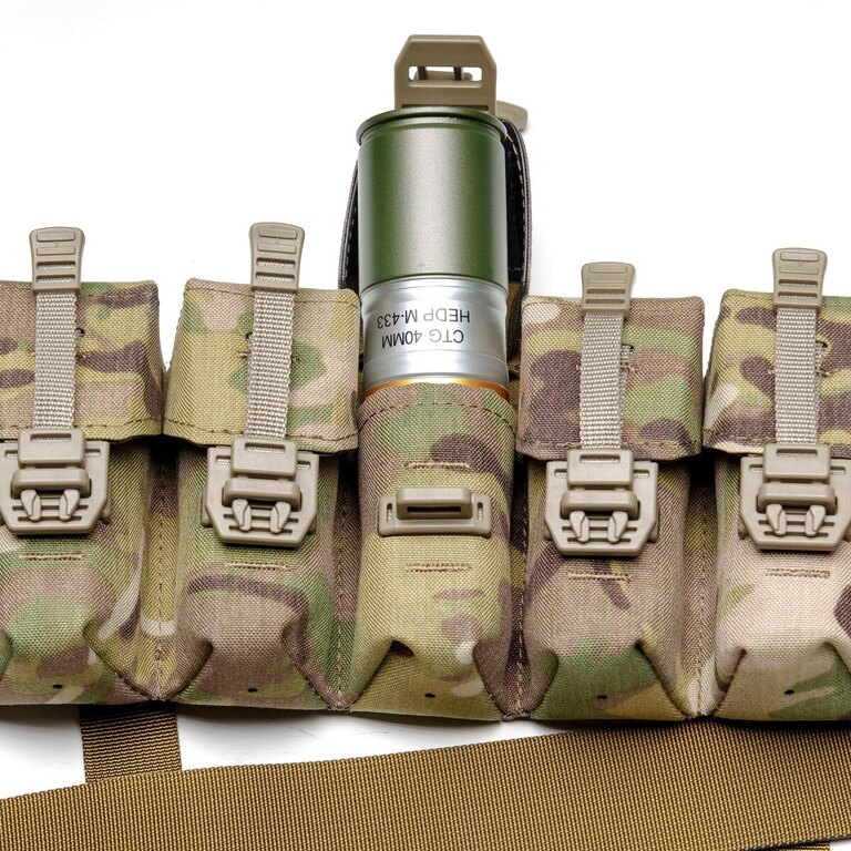 | Ďalšie špecifikácie | Určené pre 13 granátov do granátometu kalibru 40 mm Možné nosiť ako bandalír, opasok alebo pripevnené na nosnom systéme pomocou 25 mm spôn |