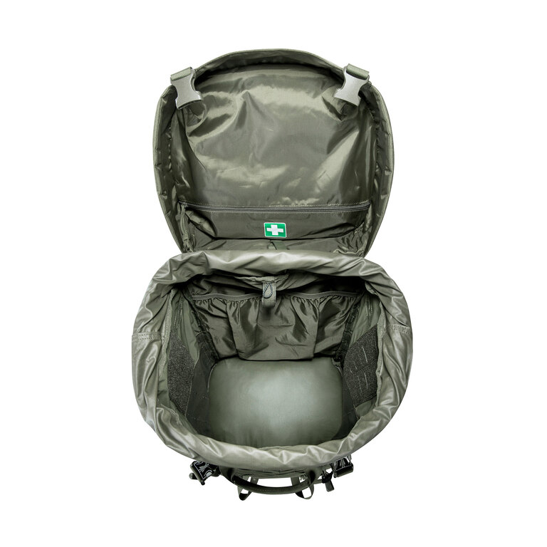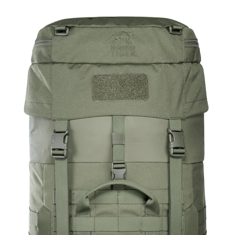 Základný objem batohu Base Pack 60 FO Tasmanian Tiger 60 litrov prispôsobíte podľa situácie vďaka rolovaciemu golieru, ktorý zvyšuje kapacitu až na 75 litrov. Veko je výškovo nastaviteľné a v prípade potreby ho možno úplne odňať. Uzatvorenie vo viacerých polohách pomáha prispôsobiť batoh aktuálnemu zaťaženiu a udržať obsah stabilný.