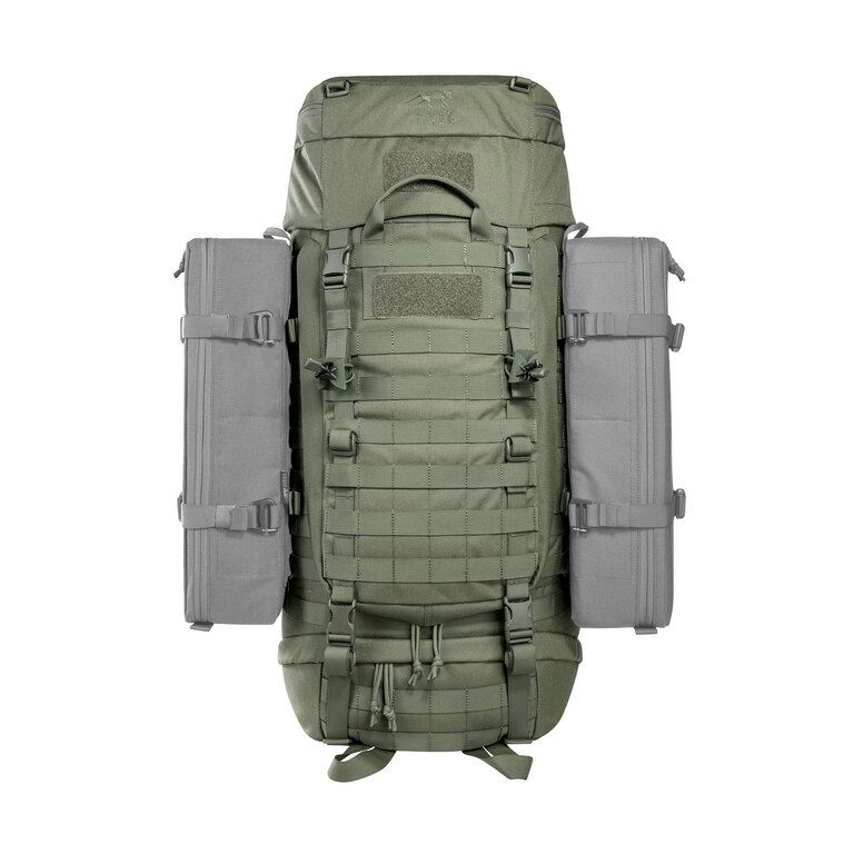 Predné aj bočné strany sú vybavené MOLLE systémom, ktorý umožňuje pripevniť ďalšiu výbavu podľa potreby. Rovnaký systém je aj na veku, takže priestor môžete ďalej rozširovať. Batoh je kompatibilný aj s hydratačným vakom. Povrchová úprava bez PFC/PFAS pomáha chrániť obsah proti vlhkosti.