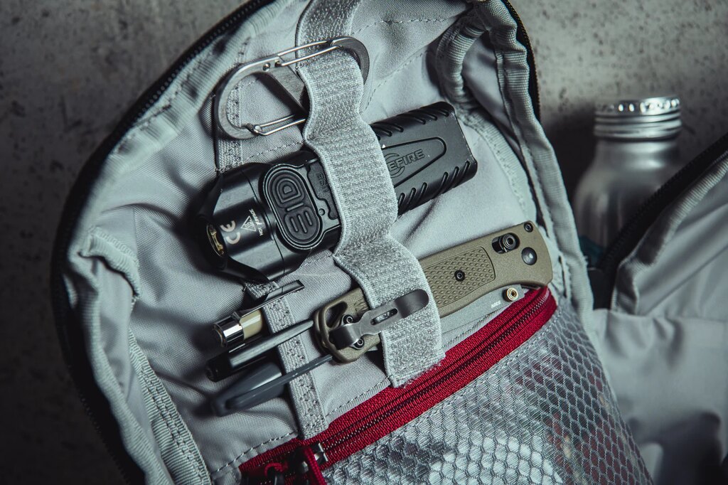 Batoh je vybavený Rapid Access Pull Tab (tiahlo pre rýchly prístup), ktoré sa dá premiestniť medzi zipsmi alebo vymeniť za iný typ podľa vlastného EDC setupu. Vďaka tomu si môžete prístup k jednotlivým komorám nastaviť presne podľa svojich potrieb. Na popruhu sa nachádza skryté vrecko, ktoré slúži ako diskrétny úložný priestor pre doklady, citlivé vybavenie alebo drobnosti, ktoré chcete mať rýchlo po ruke a mimo hlavnej komory.