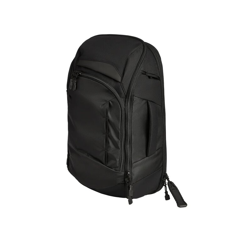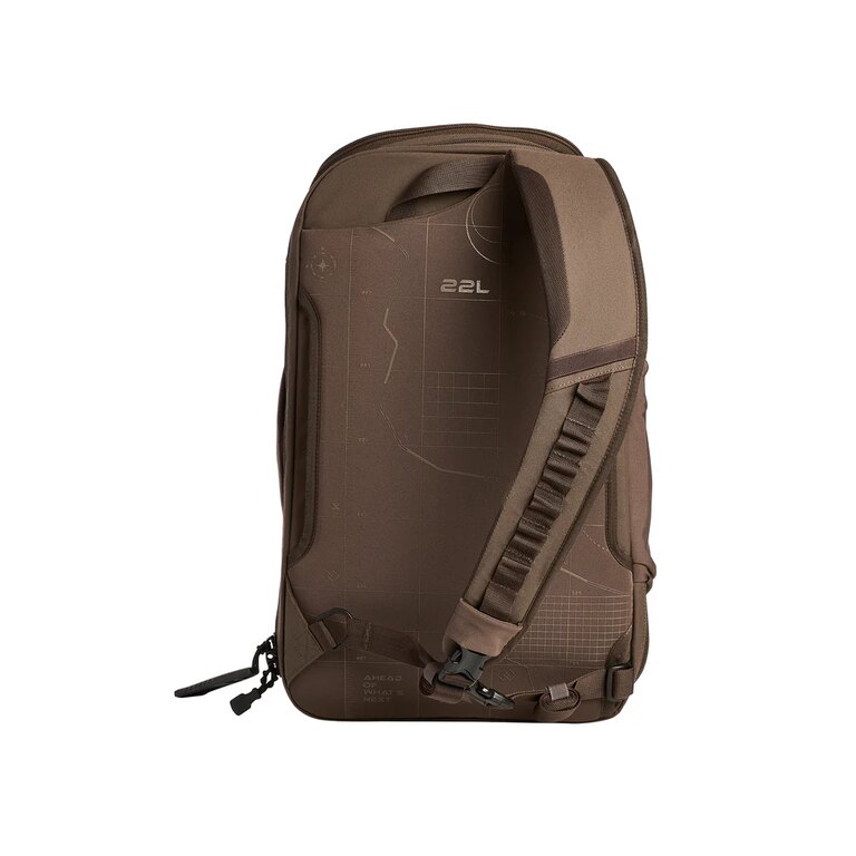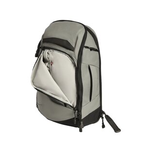 Chrbtový panel z peny zvyšuje komfort pri nosení a je doplnený o vertikálne aj horizontálne prievlaky pre rúčku cestovného kufra. Polstrovaný ramenný popruh je nastaviteľný, vybavený rýchloupínacími prackami a elastickými pútkami pre drobné doplnky. Minimalistický bedrový popruh sa dá ľahko schovať, ak nie je potrebný. Všetky vrecká sú osadené odolnými YKK zipsmi, ktoré sú navrhnuté pre dlhodobé a intenzívne používanie bez zachytávania.