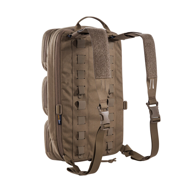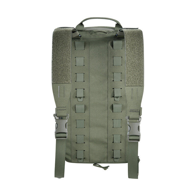 Batoh funguje ako doplnok k chest rigu alebo nosiču plátov, na ktorý sa priamo pripája. Ponúka hlavnú priehradku, tri predné vrecká a priehradku na balistický plát. Vďaka tomu zachováva osvedčené rozloženie výbavy a pridáva ďalší úložný priestor bez nutnosti meniť základný setup.