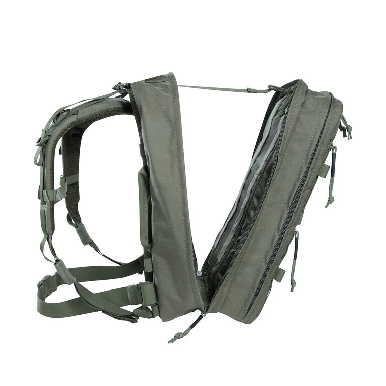 Veľké plochy na suchý zips v oboch komorách umožňujú pripevniť ďalšie vybavenie, aby ste ušetrili miesto a zároveň mali všetko po ruke. Prednú stranu dopĺňa MOLLE systém a daisy chain, pričom nechýba ani popruh pre dočasné zabezpečenie otvorenej zadnej komory pri zavesení.