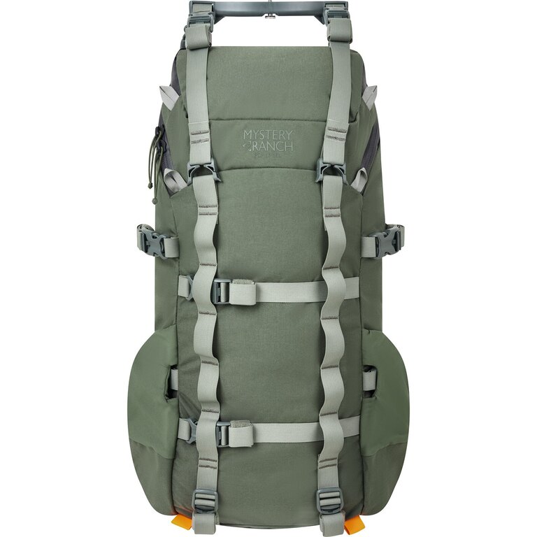 Teleskopický hliníkový rám je navrhnutý pre vyššiu nosnosť a umožňuje nastavenie podľa potreby. Nosný systém prispôsobiteľný dĺžke trupu pomáha rozložiť hmotnosť a zvyšuje komfort pri nosení. Konštrukcia vychádza zo skúseností značky Mystery Ranch s vývojom výbavy pre náročné podmienky.