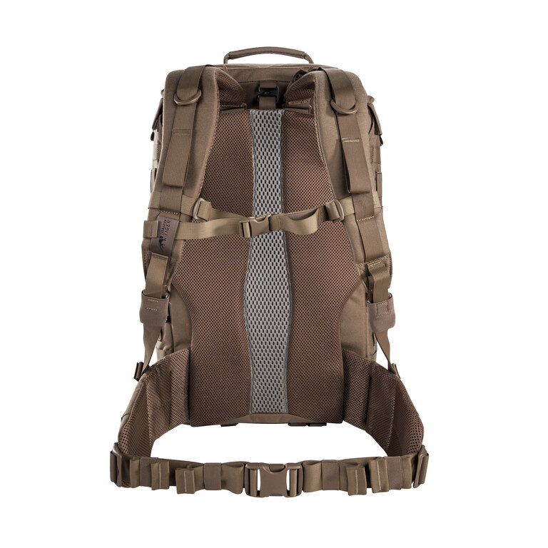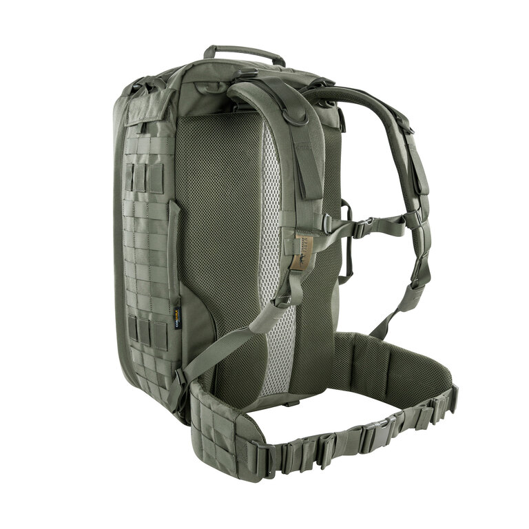 Polstrovaný chrbtový systém zaisťuje pohodlné nosenie aj pri plnom zaťažení. Dĺžkovo nastaviteľné ramenné popruhy umožňujú použitie aj cez balistickú vestu. Nechýbajú ani bočné držadlá pre manipuláciu v obmedzenom priestore.