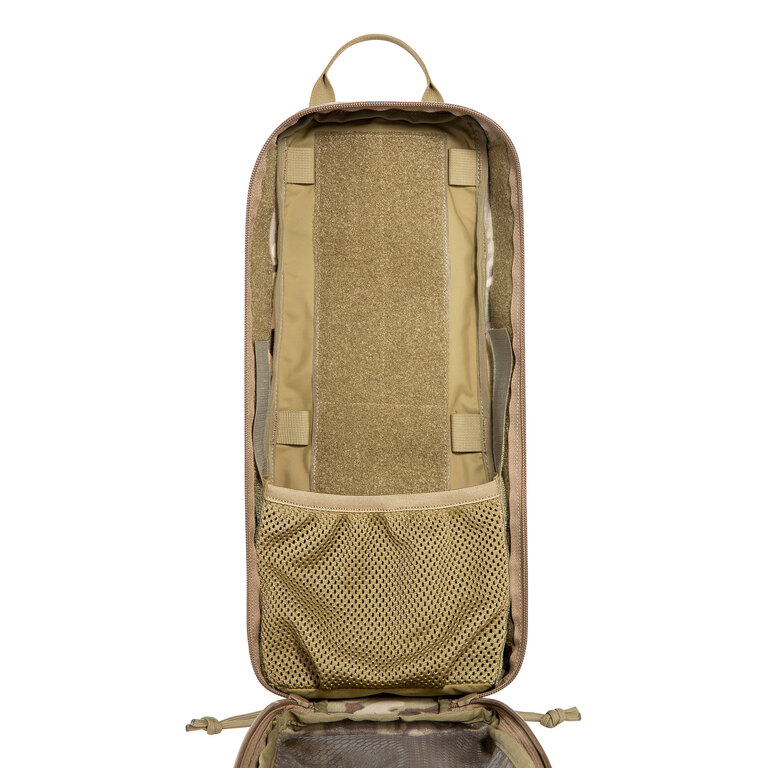 Materiály CORDURA s PFC/PFAS-free DWR povrchovou úpravou odolávajú vode aj nečistotám a udržujú vrecko funkčné aj v náročných podmienkach. Multicam vzor poskytuje spoľahlivé maskovanie v teréne a suchý zips umožňuje pripevniť doplnky alebo identifikačné prvky podľa potreby.
