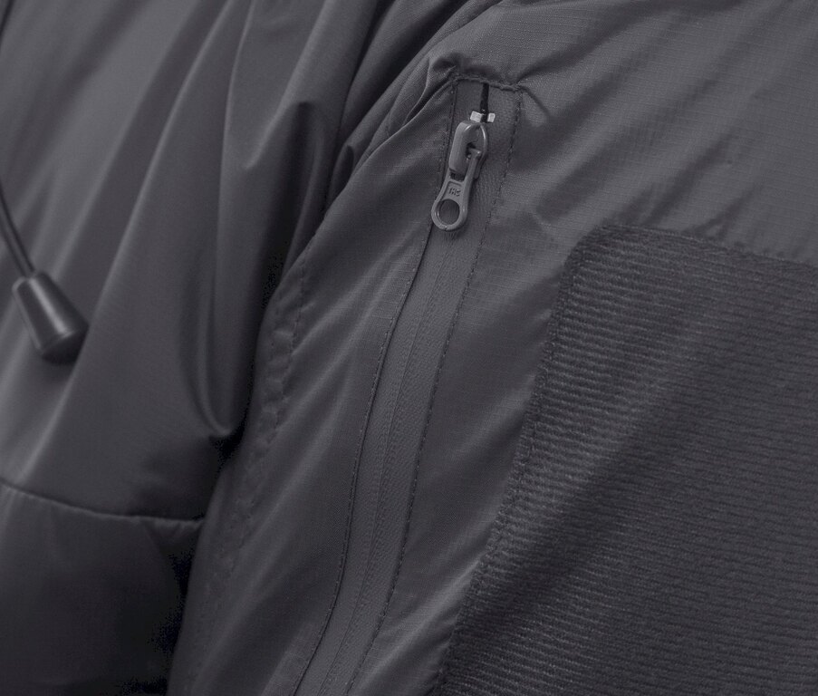 Zvršok bundy je vyrobený z nylonového úpletu s Rip Stop väzbou a vodoodpudivou úpravou, ktorý sa nezľakne ani ľahkej dažďovej prehánky. Vďaka podšívke z jemného mikrofleece bunda skvelo odvádza pot a je veľmi príjemná na nosenie. Pre uloženie potrebných vecí ponúka anorak množstvo vreciek. Typické predné vrecko "klokanka" s horizontálnym zipsom poskytne dostatok priestoru pre mapu alebo dokumenty. Na bokoch nájdete dve vrecká na ruky a na ľavom rukáve menšie vrecúško na doklady. Vedľa rukávového vrecka je umiestnený velcro panel pre umiestnenie nášivky alebo ID označenia.