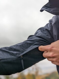 Bunda Tilak Loke 24 má anatomicky tvarované rukávy, sťahovanie na suchý zips a kapucňu, ktorú možno jednoducho zbaliť do goliera. Vrecká sú štyri a vždy poruke, ventilačné zipsy pod pazuchami sa postarajú o cirkuláciu vzduchu pri námahe.