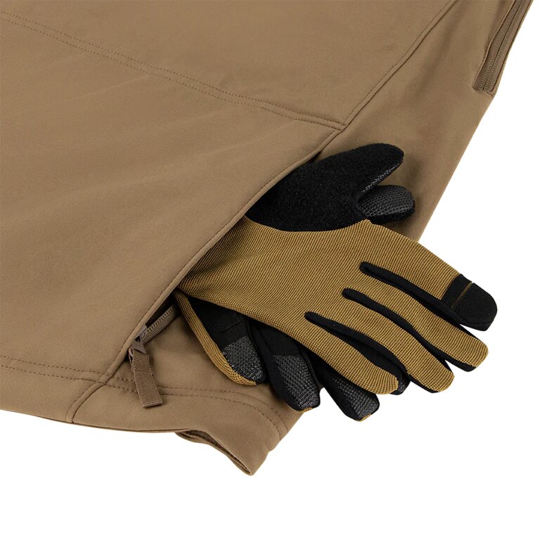 Softshellový materiál odoláva vetru, udržiava telesné teplo a zároveň odvádza vlhkosť. Bunda zostáva príjemná aj pri dlhšom nosení. Fleece vo vnútri pridáva tepelný komfort, bez pridávania zbytočnej hmotnosti. Materiál je pružný a prispôsobivý, takže neobmedzuje v žiadnom smere pohybu.