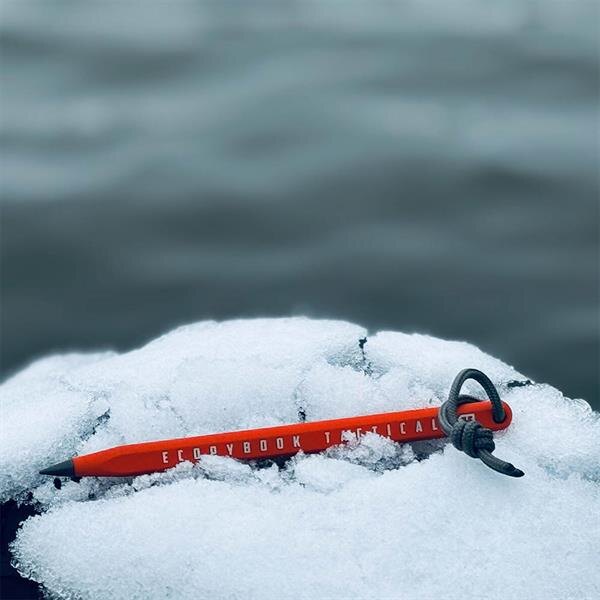 Ceruzka Ecopybook Survival Gen.2 M-Tac zapisuje spoľahlivo do Ecopybook zápisníkov aj na bežný papier, a to aj v daždi, mraze, horúčave alebo pod vodou. Kovový grafit zabezpečuje jasné a čitateľné stopy a paracord slučka umožňuje bezpečné uchopenie alebo pripnutie k batohu či puzdru, takže ceruzku máte vždy poruke pri práci vonku.