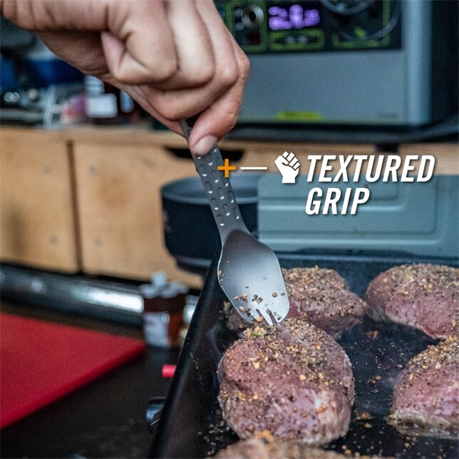 Devour Ti je navrhnutý tak, aby nezaberal miesto a pritom sa dal rýchlo vybrať, použiť a zase uložiť. Tvar sedí do ruky aj pri dlhšom jedle a titán sa jednoducho umýva, či už máte k dispozícii tečúcu vodu, sneh alebo len mokrú handričku. Zbytočné kĺby a zložité skladanie by ste tu hľadali márne.
