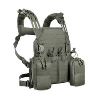 Laser-cut MOLLE väzba umožňuje rozšírenie o ďalší výstroj podľa potreby. Prednú časť tvorí výškovo nastaviteľná chlopňa so suchým zipsom, ktorá umožňuje vloženie balistického plátu typu SAPI (do veľkosti M). Chest rig tak možno prispôsobiť od ľahkého setupu až po variant s doplnkovou ochranou bez nutnosti výmeny vybavenia.