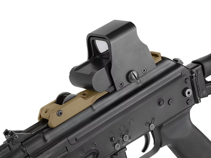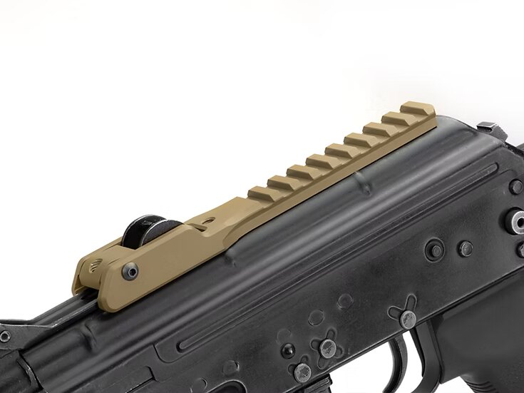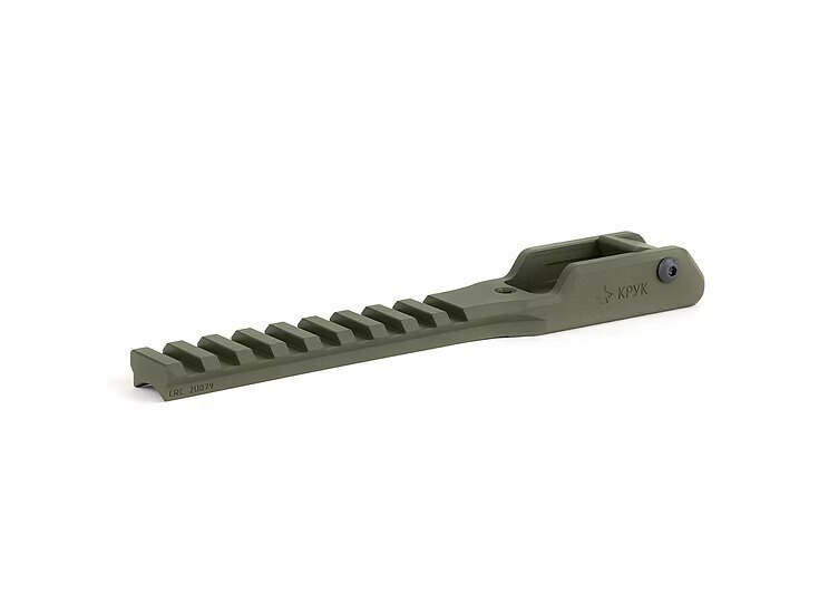 CRC 2U079 Optic Mount pre AKS-74U prináša jednoduché a spoľahlivé riešenie, ako doplniť AKS-74U o modernú optiku. Inštaluje sa bez úprav konštrukcie, zachováva voľný výhľad cez mechanické mieridlá a vďaka Picatinny lište ponúka priestor pre širokú škálu zameriavačov.