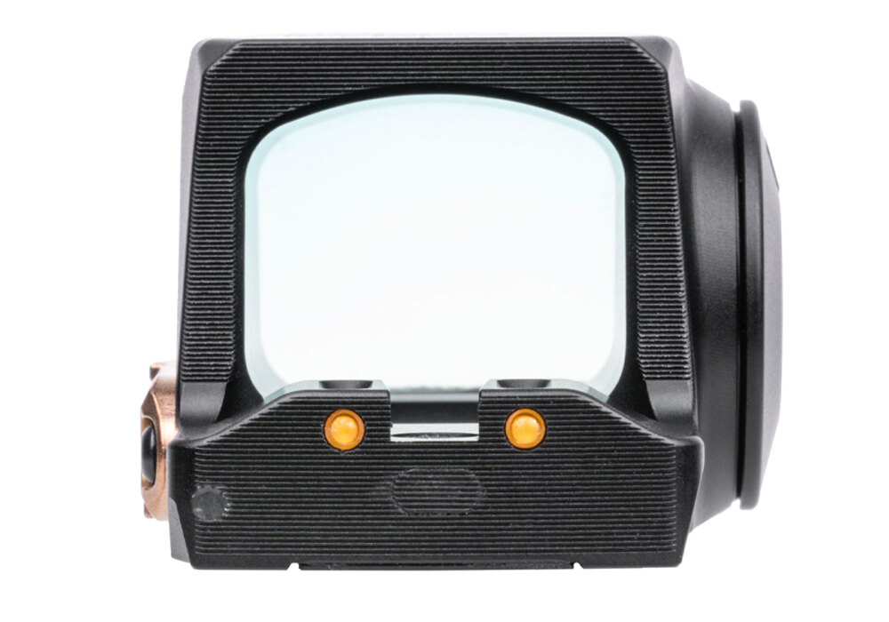 Telo je frézované z 7075 hliníka, teda rovnakého materiálu, ktorý sa používa pre rámy vojenských zbraní. Berýliový medený pružný mechanizmus zaisťuje presné a dlhodobo stabilné nastavenie výšky aj stranovej korekcie zámerného bodu. Optika je otvorená (open emitter), s asférickou šošovkou bez skreslenia, takže obraz zostáva čistý aj pri extrémnych uhloch.
