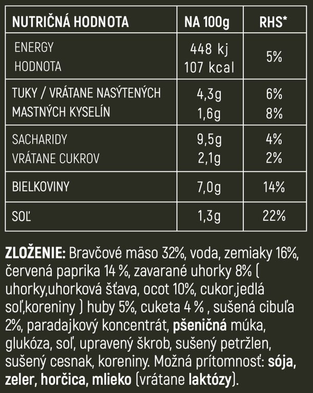 Jemné kúsky bravčového mäsa sa spájajú s pikantným gulášom a nadýchanými zemiakmi. Výsledok? Plná a sýta chuť, ktorá nakopne telo aj náladu. Kombinácia bielkovín a sacharidov dodá energiu, ktorú v teréne nie je radno šetriť.