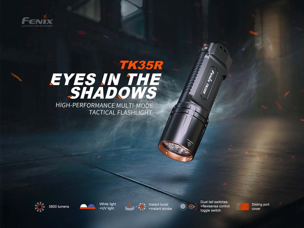 Fenix TK35R mieri na situácie, kde je potrebné silné biele svetlo aj presné UV osvetlenie. Spája vysoký výkon, dlhú výdrž a ovládanie, ktoré reaguje okamžite. Vďaka plochému telu sedí pevne v ruke a ponúka kontrolu aj pri práci v rukaviciach. Konštrukcia zvláda náročný terén, takže sa hodí pre službu, pátranie aj nočný pohyb v prírode.
