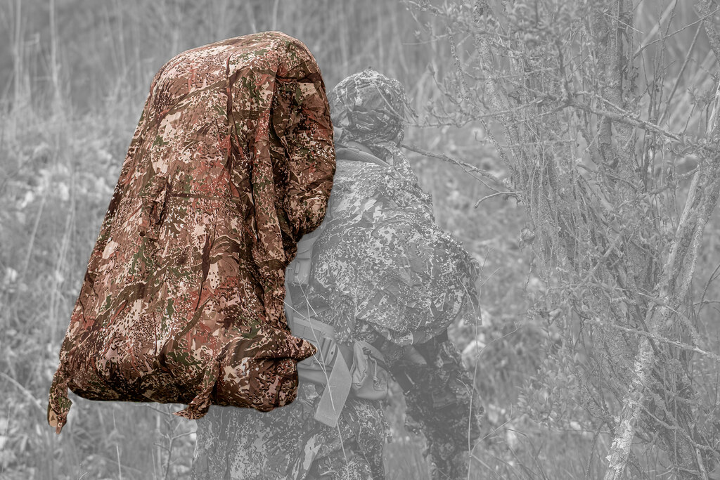 Maskovací oblek je navrhnutý tak, aby nezaberal zbytočne miesto v batohu, keď nie je nasadený. Ľahký materiál sa jednoducho zbalí a v batohu nezaberá miesto ďalšiemu vybaveniu. Keď je potrebné, stačí ho rýchlo pretiahnuť cez batoh a prispôsobiť aktuálnemu prostrediu.
