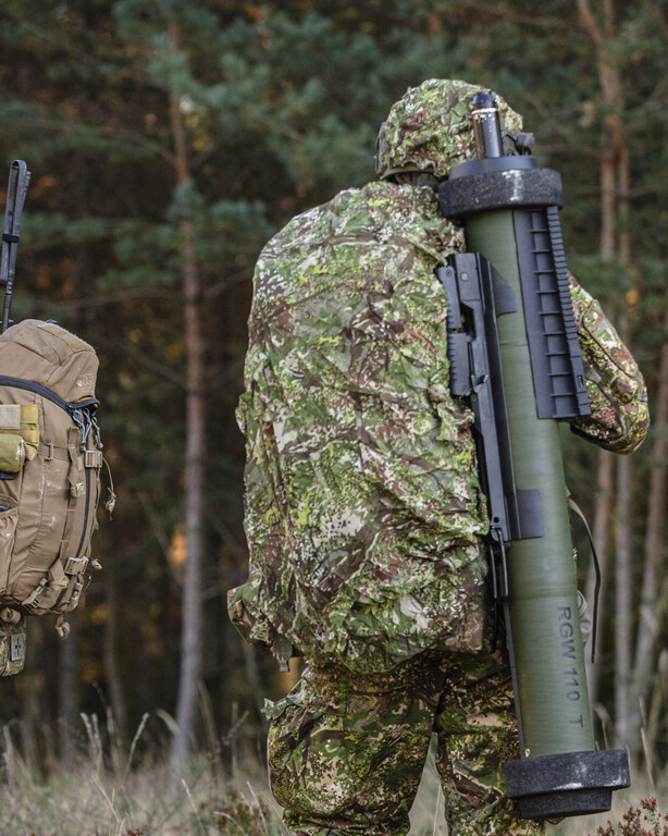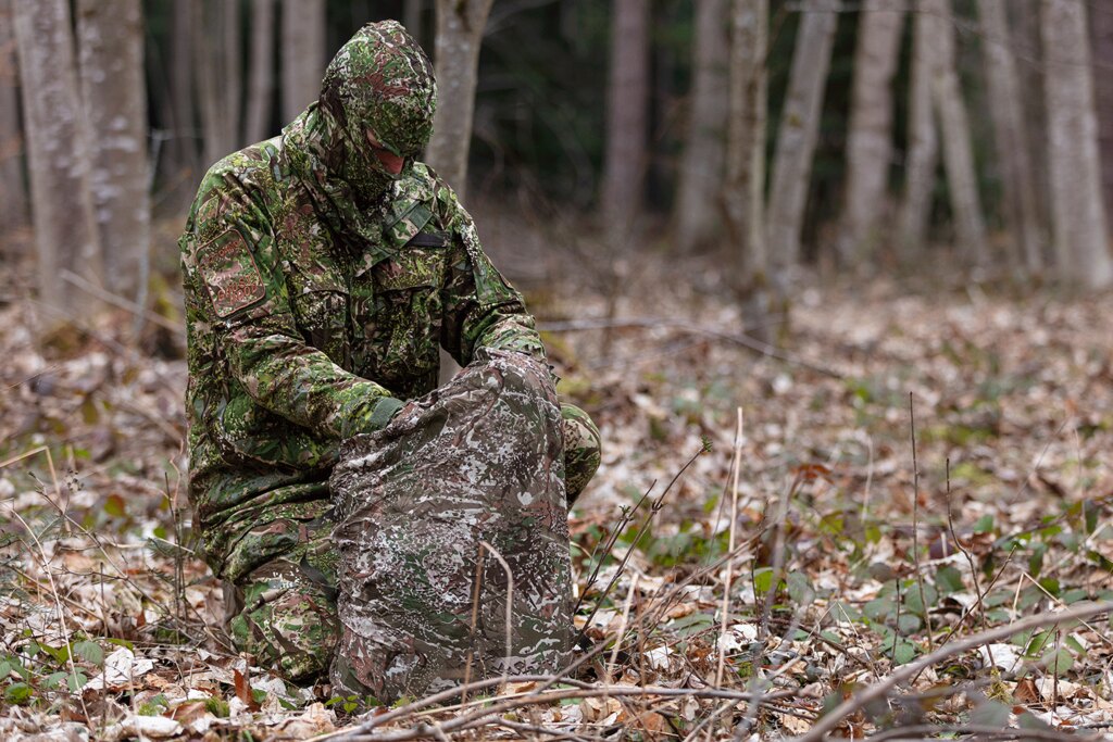 Batoh patrí medzi najväčšie prvky výstroja, ktoré ľahko prezradia siluetu postavy. Maskovací oblek pomáha rozbiť jeho tvar a zladiť výstroj s okolím. Vďaka tomu batoh menej vystupuje z okolitej vegetácie alebo terénu a nepriťahuje pozornosť pri presune ani pri zastávkach.