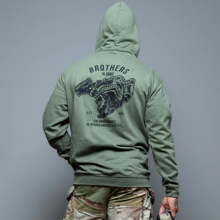 Táto mikina je začiatkom všetkého. Mikina Team nesie pôvodné logo Brothers in Arms a pripomína, odkiaľ pochádzame – aj prečo sme tu. Nápis „Eine Bruderschaft die niemand anderes versteht“ znamená: Bratstvo, ktoré nikto iný nemôže pochopiť. A práve preto ho Brothers in Arms ponechali v nemčine. Pretože bratstvo nepotrebuje preklad. Potrebuje lojalitu, činy a spoločný cieľ.