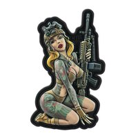 Motív pin-up girls bol prevzatý z americkej kultúry polovice 20. storočia. Obrázky krásnych a často len sporo odetých dievčat plnili šatne vojakov US Army už za 2. svetovej vojny. Ale v rovnakom konflikte sa objavovali aj ako maľovky na lietadlách alebo dokonca bombách. Na tejto konkrétnej nášivke je dievča vyobrazené s ľahkým guľometom M249 a jej celkový postoj symbolizuje pripravenosť do akcie.