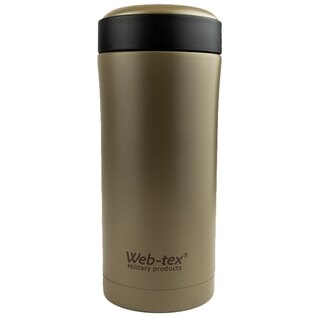 Výborná nerezová termoska so špeciálnym vekom od firmy Web-tex. Pomôže vám uschovať pitie a potraviny pri konštantnej teplote. A nezáleží, či sú teplé či studené. Veko navyše obsahuje špeciálny priestor, do ktorého môžete uschovať predměty zodpovedajúcej veľkosti. Veko je pred pretečením ochránené gumovým tesnením. Nemusíte sa preto obávať toho, že vám vytečie v batohu.