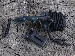 Čepeľ je vyrobená z ušľachtilej ocele 5Cr15MoV. Tanto tvar s krátkou špičkou a rovnakou hrúbkou takmer po celej dĺžke má vynikajúcu odolnosť. Osvedčí sa hlavne pri penetrácii silnejších materiálov, kedy by hrozilo poškodenie špičky. Ľahko prehnuté ostrie sa hodí pre širokú škálu rezacích úloh. Rukoväť má výrazné priehlbiny pre tri prsty a spolu s vrúbkovaním na hornej časti čepele zaisťuje pevný a istý úchop aj zapretie palca. Črienky sú vyrobené z vrstveného laminátu Micarta, ktorý je ľahký, veľmi odolný a pevný. Jemná zdrsňujúca textúra má protišmykové vlastnosti. Na konci rukoväte je splietaný nylonový vrkôčik, za ktorý môžete nôž ľahko a rýchlo vytiahnuť. Nôž je dodávaný s čiernym puzdrom z tvrdeného nylonu, ktoré má na konci nastaviteľnú šnúrku pre zavesenie na krk. Môžete ho aj pomocou odnímateľné spony zavesiť aj na opasok alebo popruh.