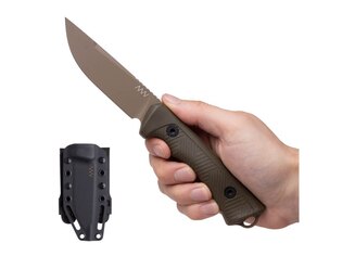 Tento nôž ďalej disponuje samosvorným kydexovým puzdrom, ktoré je ručne vyrábané a vybavené modulárnymi drážkami a MOLLE klipmi, ktoré sú vždy súčasťou balenia. Za zmienku stojí aj otvor na prevlečenie paracordu v pätke noža pre spoľahlivú a bezpečnú manipuláciu s nožom.