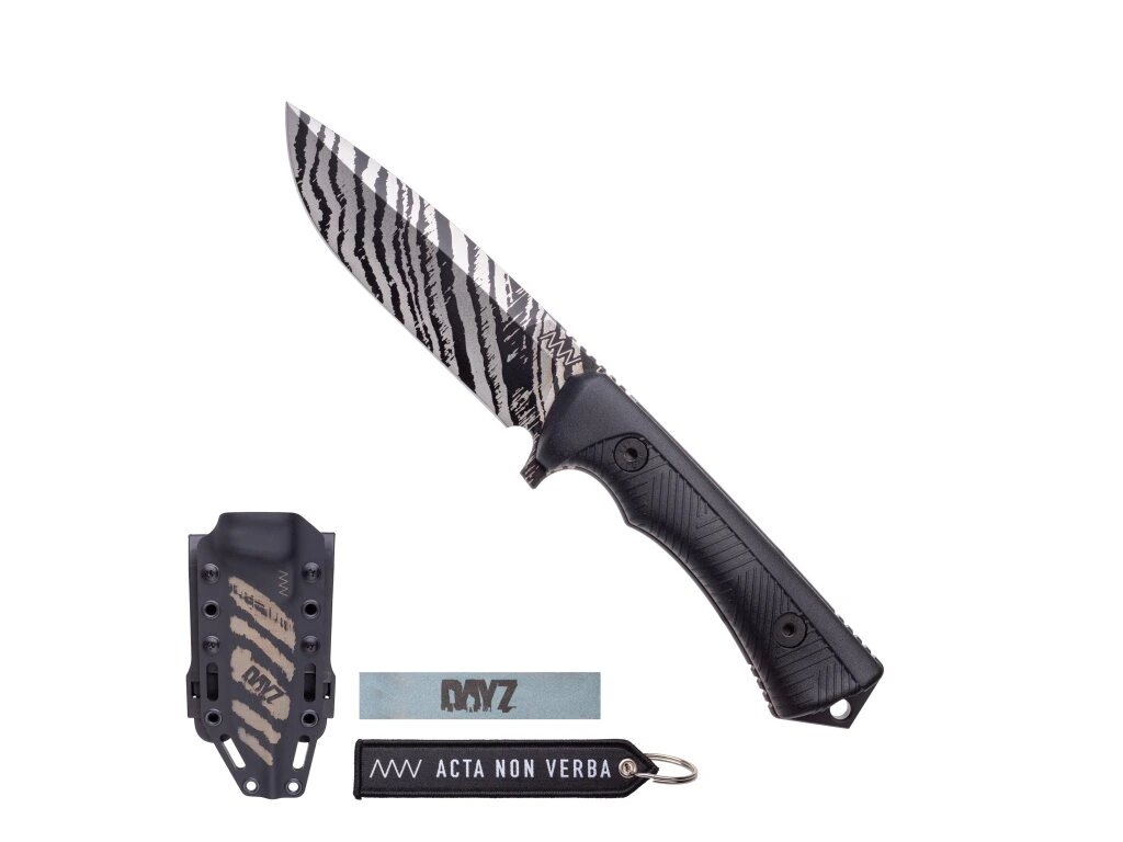 Súčasťou balenia je samosvorné kydexové puzdro s MOLLE väzbou pre variabilné upevnenie. Puzdro je označené logom hry DayZ z oboch strán. Nechýba ani brúsny kameň pre údržbu čepele a kľúčenka ANV Knives. Celok tvorí ucelenú výbavu pripravenú na použitie aj zberateľské uloženie.