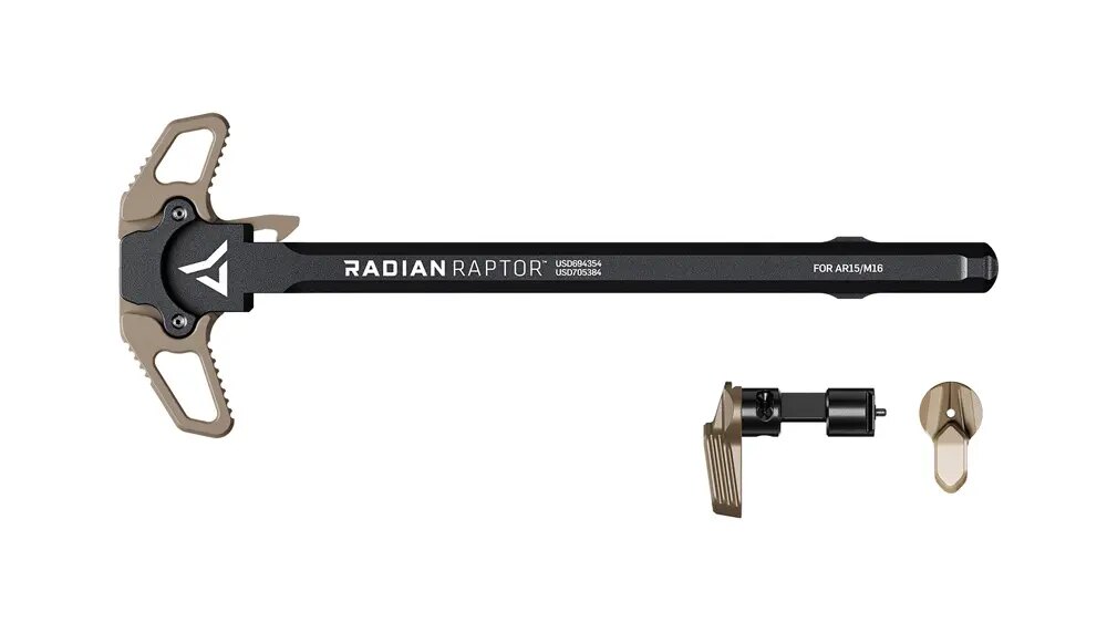 Úderné kombo pre rýchle a spoľahlivé ovládanie z oboch strán. Raptor robí naťahovanie rýchlym a plynulým — z každej ruky — a Talon dáva poistke zbrane funkciu klasického 90 ° alebo skráteného 45 ° chodu bez vŕtania alebo skrutiek navyše. Konštrukcia je pripravená znášať ostrú prevádzku a funguje najlepšie spoločne.