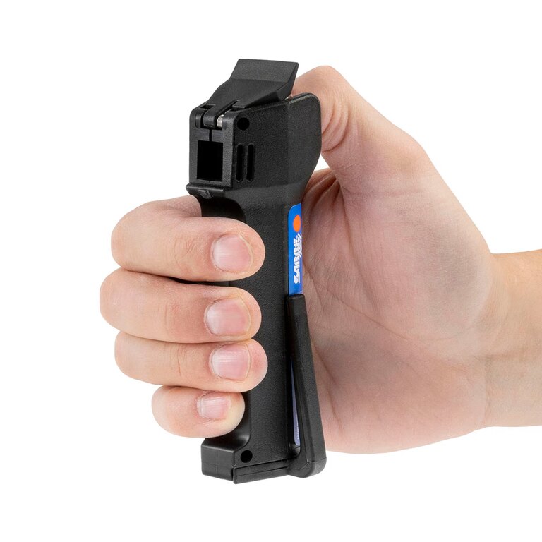 Konštrukcia počíta s tým, že v krízovej situácii nie je čas premýšľať. Intuitívne ovládanie dopĺňa praktická poistka proti nechcenému stlačeniu. Ergonomická rukoväť dobre sedí v dlani a klip umožňuje pohodlné nosenie vo vrecku alebo na opasku. Pripravenosť bez kompromisov a bez zbytočných pohybov.