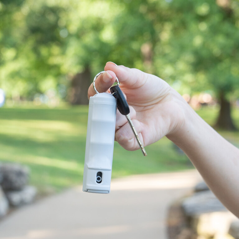 Snap-Clip karabína sa cvakne na kľúče, batoh alebo opasok, takže sprej je vždy po ruke. Keď je potrebné, nestráca sa čas hľadaním. Ergonomické prevedenie aj odolné spracovanie zaručujú, že Sabre Red bude spoľahlivým parťákom dlhodobo.