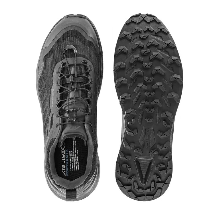 | Detaily materiálu | Vrchný materiál: žakárovo tkané mikrovlákno Membrána: Gore-Tex® Invisible Fit Stielka: ATR (= All Terrain Running) - špeciálny typ navrhnutý pre beh aj turistiku v rozmanitom teréne Medzipodrážka: LOWA® DynaEVA® - patentovaná dvojvrstvová EVA pena Podrážka: guma - LOWA® Trac C |