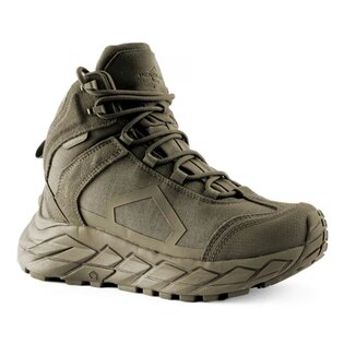 Ďalšie špecifikácie | Výborný odvod vlhkosti Vodoodolné Zosilnené nárazové zóny pre extra ochranu na špičke, päte a bokoch pred nárazmi, pádmi a trením Integrované 3D tvarované bočnice pre zlepšenie stability členka a celkovej kontroly chodidla na nerovnom teréne Kryt päty pre extra oporu zadnej časti chodidla a rozptyl nárazov Systém podrážky Tactical XR (Extra Rebound) Systém šnurovania s háčikmi v hornej časti (na členku) Pútko/úchop vzadu pre uľahčenie obúvania/zúvania |