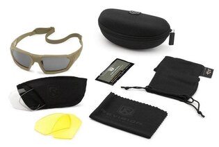 | Súčasťou dodávky | Okuliare (rámik) Šošovky / zorníky - číre, dymovo sivé a kontrastné žlté Upínací istiaci popruh Látkový obal na náhradný zorník Prepravné vrecko z mikrovlákna na zorníky (poslúži ako čistiaca handrička) Pevné škrupinové puzdro |