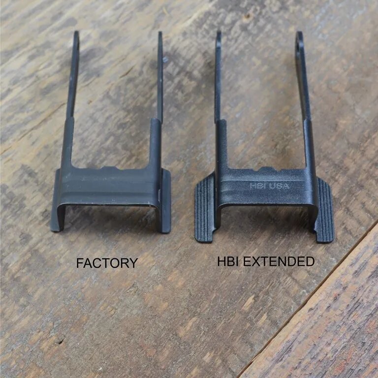Rozšírená páčka výrazne zjednodušuje a urýchľuje výmenu zásobníka. Oproti štandardnej verzii má širšiu kontaktnú plochu a dlhší dosah smerom k lučíku, takže ju ľahko ovládate ukazovákom alebo palcom bez premáhania. Aj pri rýchlej práci na strelnici zostáva pohyb istý a plynulý.