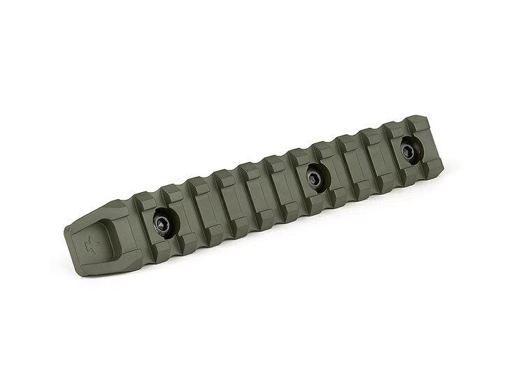 Stačí akýkoľvek štandardný M-LOK slot – a lišta sedí úplne presne. Dvanásť Picatinny slotov poskytne dostatočne dlhý priestor pre svietidlo, laser, grip alebo iné príslušenstvo, ktoré chcete mať vždy poruke. Žiadne dodatočné úpravy, žiadne triky.