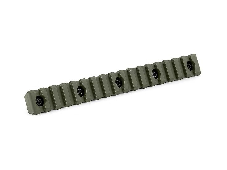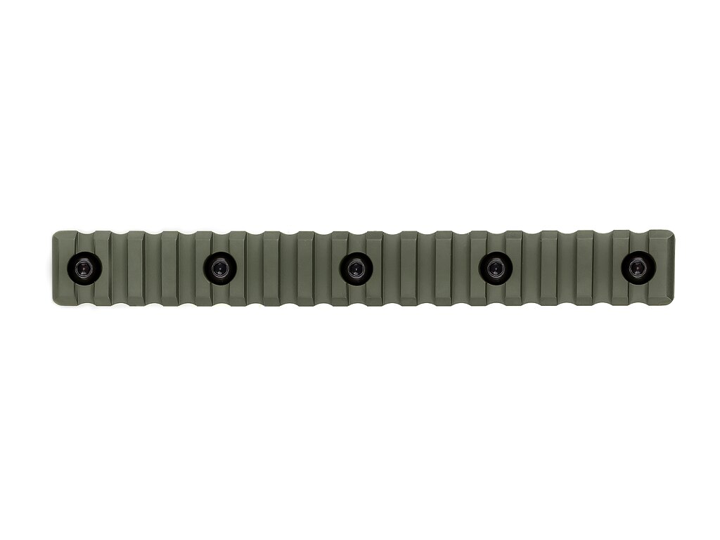 Stačí akýkoľvek štandardný M-LOK slot – a lišta sedí úplne presne. Sedemnásť Picatinny slotov poskytne dostatočne dlhý priestor pre svietidlo, laser, grip alebo iné príslušenstvo, ktoré chcete mať vždy po ruke. Žiadne dodatočné úpravy, žiadne triky.
