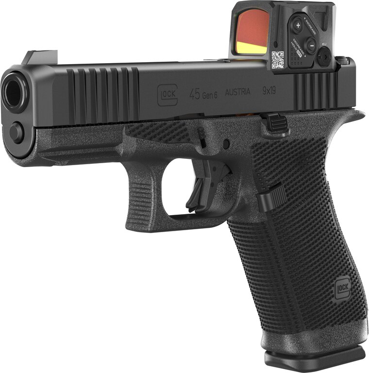 Glock 45 Gen6 A-CUT COA COMBO spája výhody integrovaného kolimátora, plnohodnotného rámu a kompaktného záveru do jedného funkčného zbraňového systému. Vznikol v spolupráci značiek GLOCK a Aimpoint, ktoré spojili skúsenosti zo služobného aj civilného použitia. Pištoľ prichádza s kolimátorom nasadeným priamo z výroby, takže odpadá riešenie kompatibility alebo montáže. Crossover konštrukcia ponúka istý úchop aj rýchlu manipuláciu pri zachovaní kompaktnejšej hornej časti. Nová generácia pridáva prepracovanú ergonómiu, plne obojstranné ovládanie a vylepšené ovládacie prvky. Celok je pripravený na okamžité použitie bez ďalších zásahov.