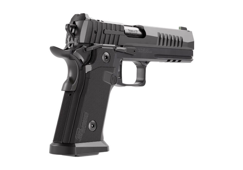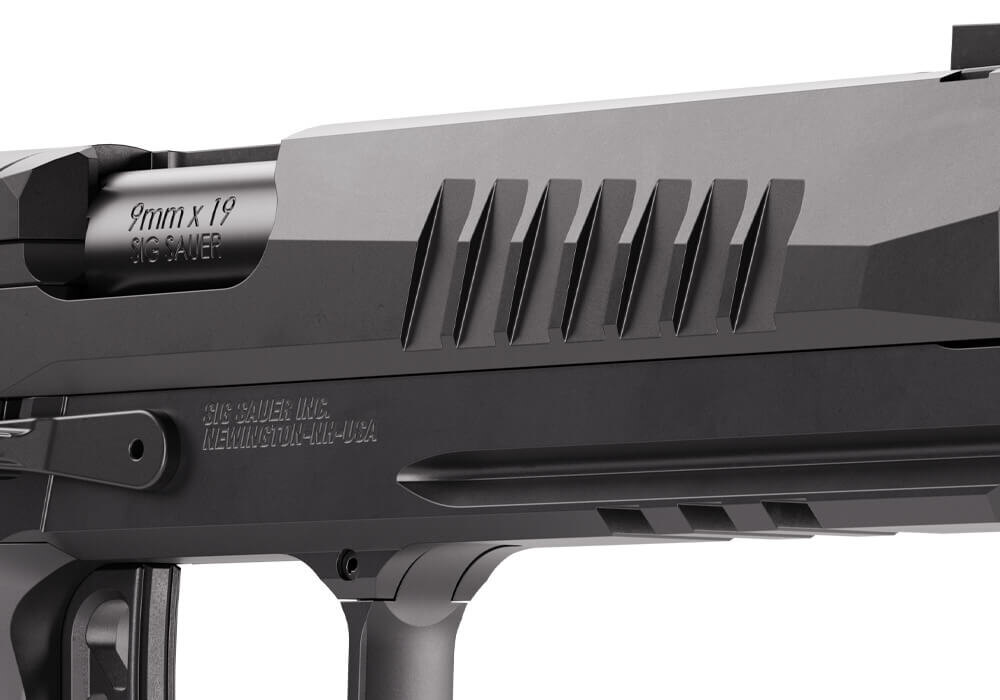 Full-size záver je vybavený rozhraním SIG-LOC PRO pre priamu montáž modernej pištolovej optiky. Agresívne serrace v duty štýle umožňujú istú manipuláciu v náročných podmienkach. Konštrukcia záveru zodpovedá služobnému použitiu aj dynamickým disciplínam.