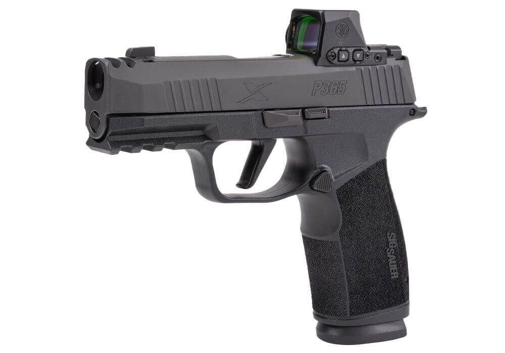 Pistole P365 XMACRO COMP Sig Sauer v kalibri 9×19 s kolimátorom ROMEO-X Compact spája vysokú kapacitu zásobníka, integrovaný kompenzátor a kolimátor v kompaktnom tele vhodnom pre skryté nosenie. Nový Macro-Compact rám umožnil použiť zásobník na 17 nábojov pri zachovaní úzkeho profilu radu P365. Integrovaný kompenzátor znižuje zdvih hlavne pri výstrele a zlepšuje kontrolu pri rýchlej streľbe. Celok ponúka parametre väčšej pištole bez zvýšenia rozmerov.