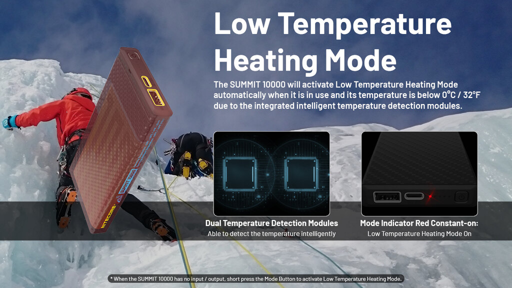Keď teploty klesajú hlboko pod nulu, väčšina powerbaniek to vzdá. Táto nie. Nitecore Summit 10000 udržiava výkon aj v mraze, či ste na horách, v divočine alebo za polárnym kruhom. Je to spoľahlivý zdroj energie, ktorý funguje, keď ostatní zlyhajú.