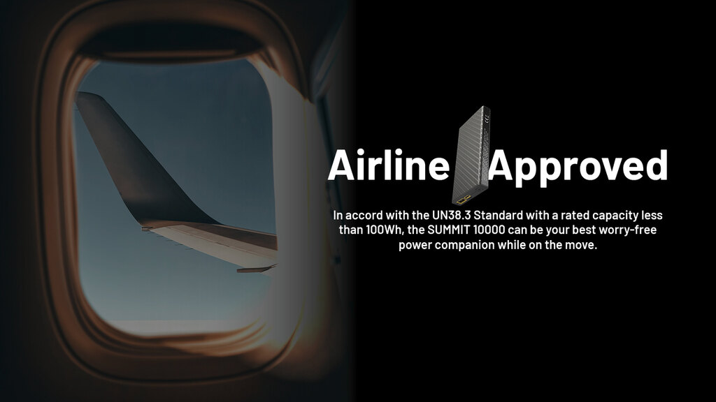 Summit 10000 spĺňa medzinárodné normy pre bezpečnú prepravu letecky, takže sa dá vziať bez obáv aj do kabíny. Ochranné obvody bránia prehriatiu, skratu aj prepätiu – energia zostáva pod kontrolou za každej situácie.