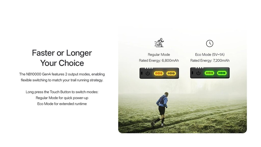 NB10000 Gen4 patrí medzi ultralight powerbanky vo svojej triede. Hmotnosť okolo 143 g a rozmery menšieho telefónu umožňujú nosiť ju vo vrecku batohu alebo bundy bez zbytočnej záťaže. Kapacita 10 000 mAh vystačí približne na dve nabitia bežného mobilného telefónu alebo napríklad akumulátora Nitecore NL1834R.
