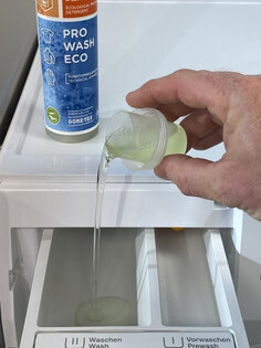 Pro Wash Eco Fibertec je koncentrovaný prací prostriedok určený na šetrné pranie funkčného oblečenia. Vhodný je pre materiály ako Gore-Tex, softshell, fleece, perie a ďalšie membránové či priedušné tkaniny, u ktorých pomáha zachovať ich vlastnosti.