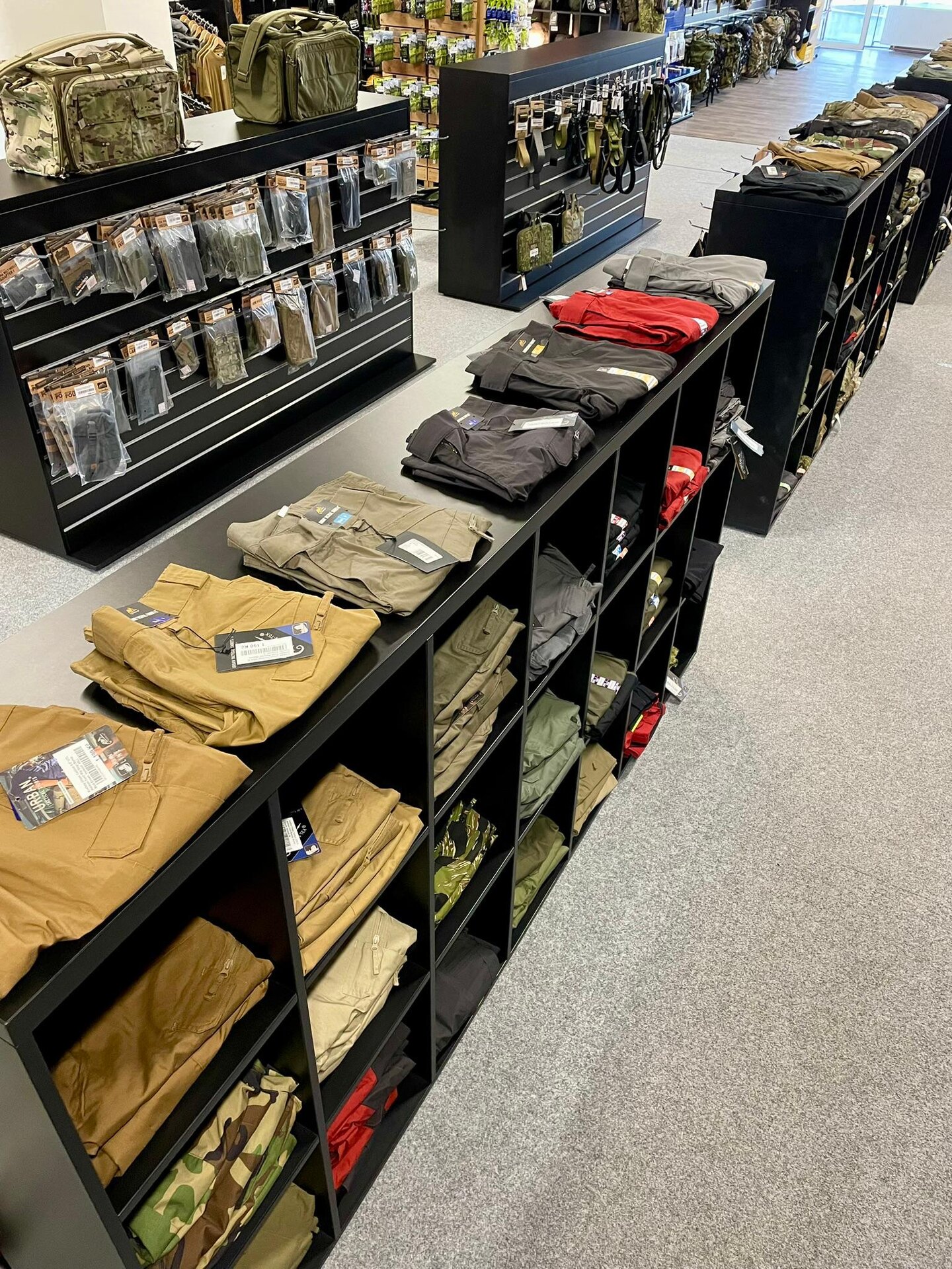 V 1. NP nájdete sortiment určený primárne pre ozbrojené zložky, bezpečnostné a usporiadateľskej agentúry, poclii, hasičov a pod. Máme tu zbrane a príslušenstvo k nim, obranné prostriedky, oblečenie a ďalšie. V 2. NP nájdete všetok tovar pre outdoor, cestovanie a kempovanie.