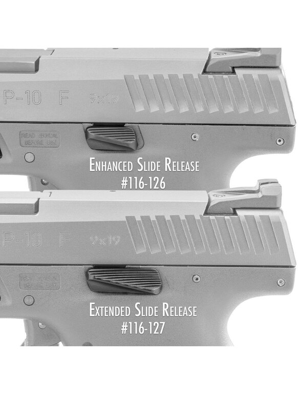 Jednoduchšia manipulácia so záchytom záveru bez zbytočných pohybov navyše. Predĺžený záchyt záveru pre CZ P-10 poskytuje širšie, ergonomické páky, ktoré sú posunuté smerom dozadu — lepšie sadnú palcom a zjednodušujú ovládanie záveru aj v napätej situácii. Precízne opracovanie z ocele s čiernou povrchovou úpravou zaručuje dlhú životnosť.