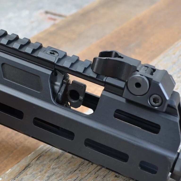 Predpažbie má na 3., 6. a 9. hodine v jednom radu sloty Magpul M-LOK. Na 12. hodine sa môže predpažbie pochváliť Picatinny lištou po celej svojej dĺžke. Miesta na príslušenstvo máte dosť a rozloženie slotov dáva zmysel pri bežnom nasadení doplnkov. Picatinny lišta na 12. hodine drží pevne aj ťažšie montáže bez kompromisov v usadení.
