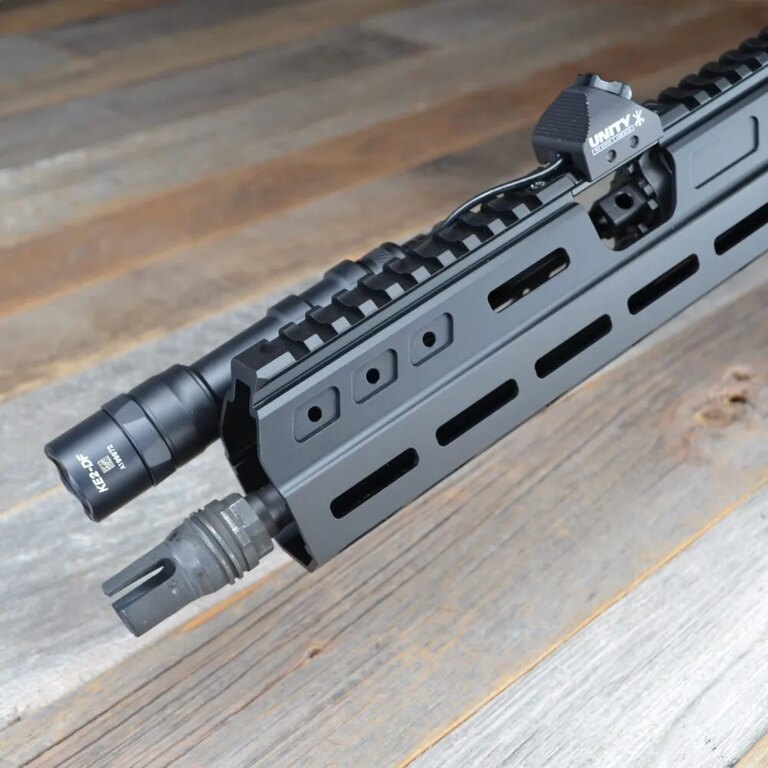 Predpažbie má na 3., 6. a 9. hodine v jednom radu sloty Magpul M-LOK. Na 12. hodine sa predpažbie môže pochváliť Picatinny lištou po celej svojej dĺžke. Miest na príslušenstvo máte dosť a rozloženie slotov dáva zmysel pri bežnom nasadení doplnkov. Picatinny lišta na 12. hodine drží pevne aj ťažšie montáže bez kompromisov v usadení.